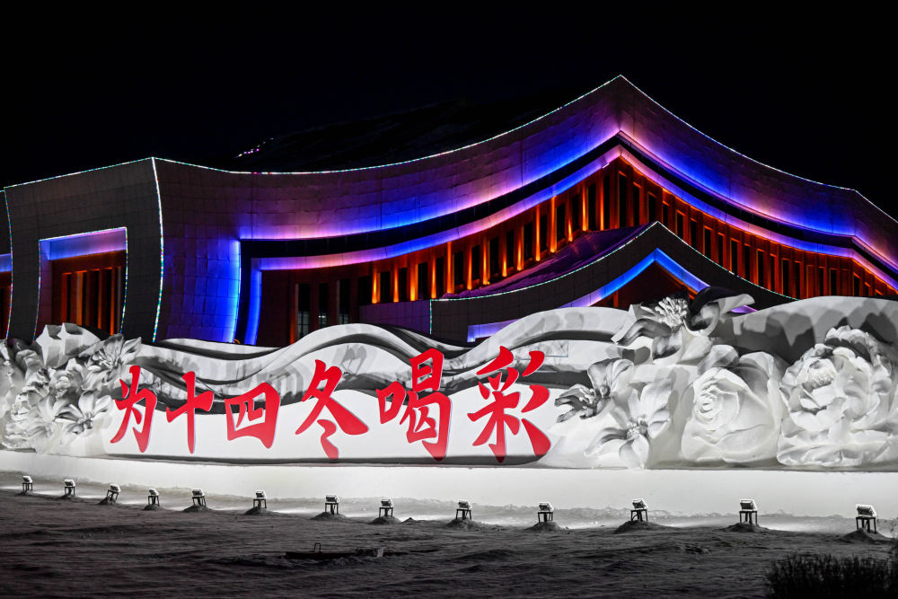 这是“十四冬”主会场外的雪雕(2024年2月14日摄)。新华社记者 连振 摄
