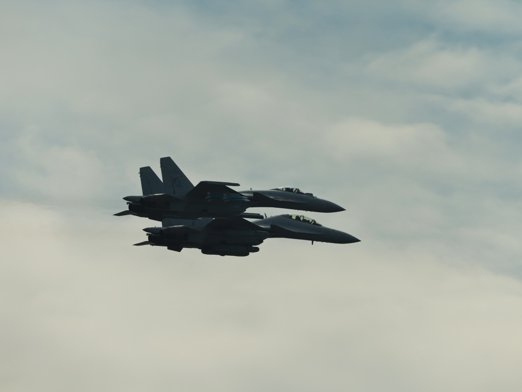11月9日,海军歼-15系列舰载机编队在广东珠海进行适应性飞行训练。