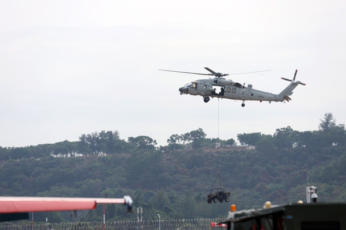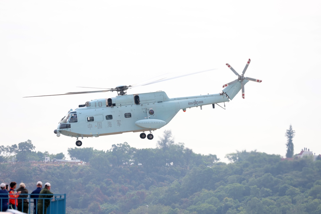 11月9日,海军直-20J舰载直升机在广东珠海进行适应性飞行训练。