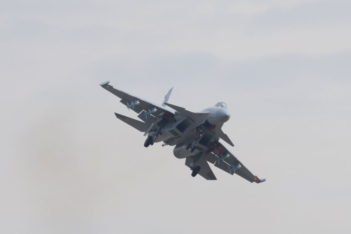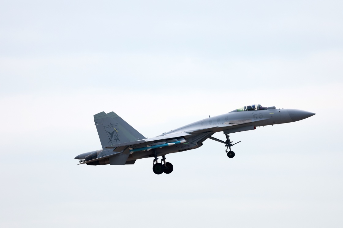 11月9日,海军歼-15系列舰载机在广东珠海进行适应性飞行训练。