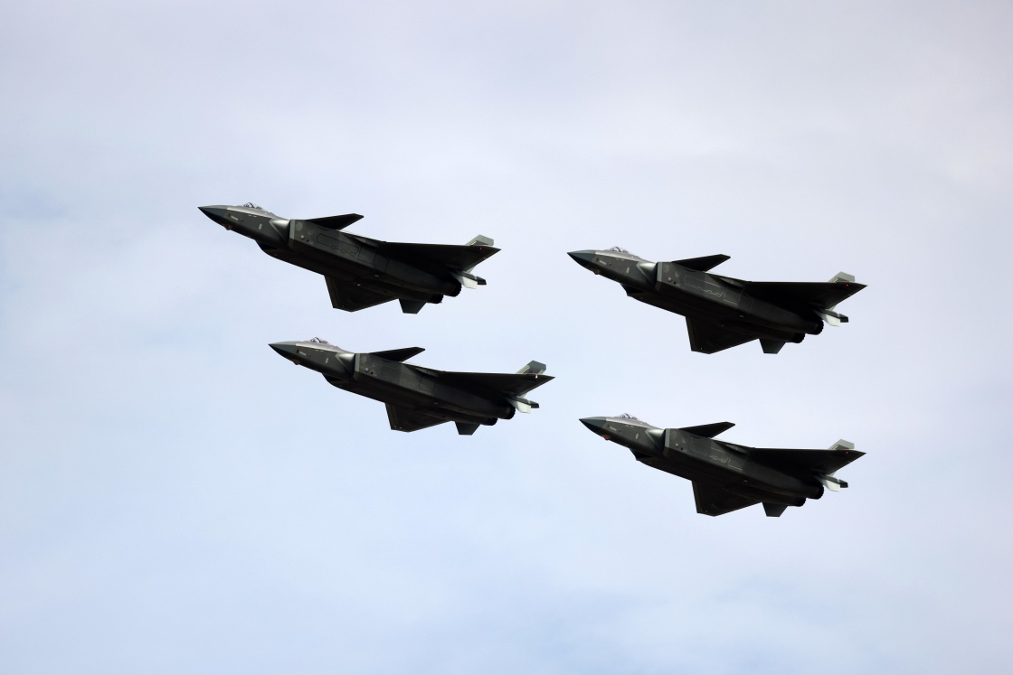 11月9日,空军4架歼-20在广东珠海进行适应性飞行训练。