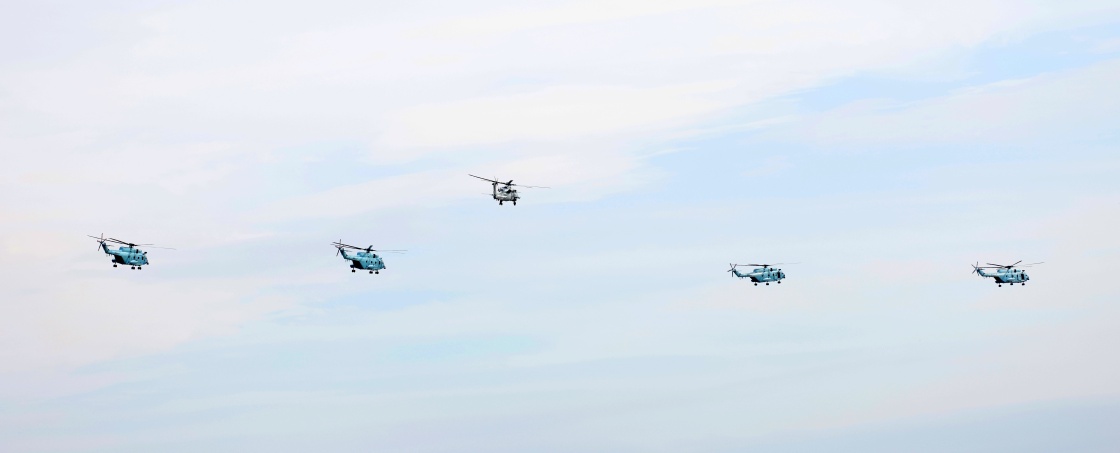11月9日,海军直升机在广东珠海进行适应性飞行训练。