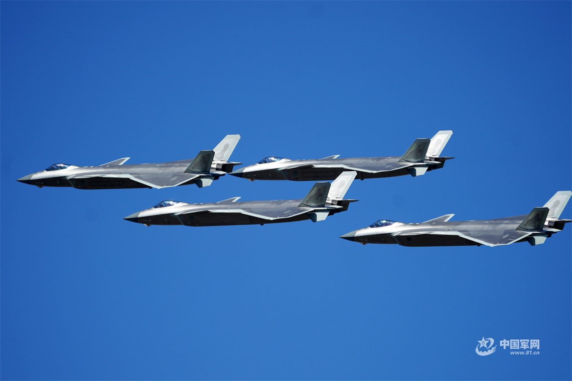 11月8日,来自空军的歼-20编队进行适应性飞行训练。中国军网记者 孙悦 摄