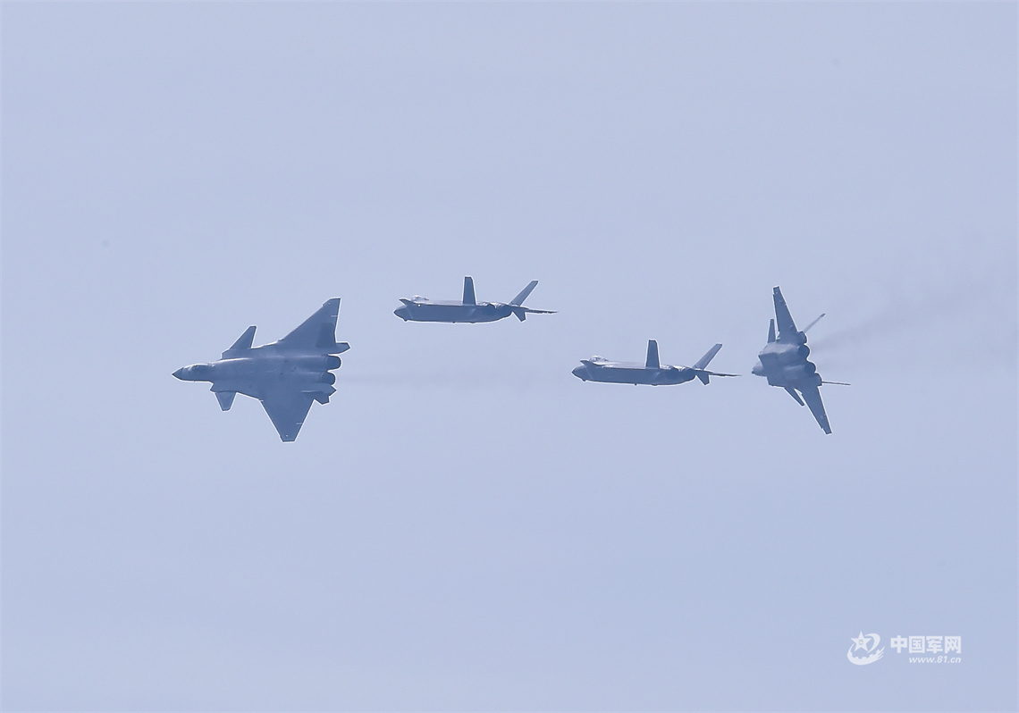 11月9日,4架歼-20再次飞临珠海,进行第二次场地适应性飞行训练。解放军报记者 栾铖 摄