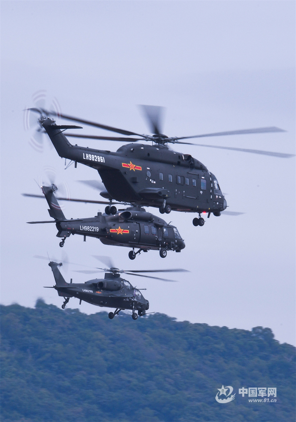 11月9日,来自陆军的直-20、直-10、直-8L直升机,进行了航展前的适应性飞行训练。解放军报记者 栾铖 摄