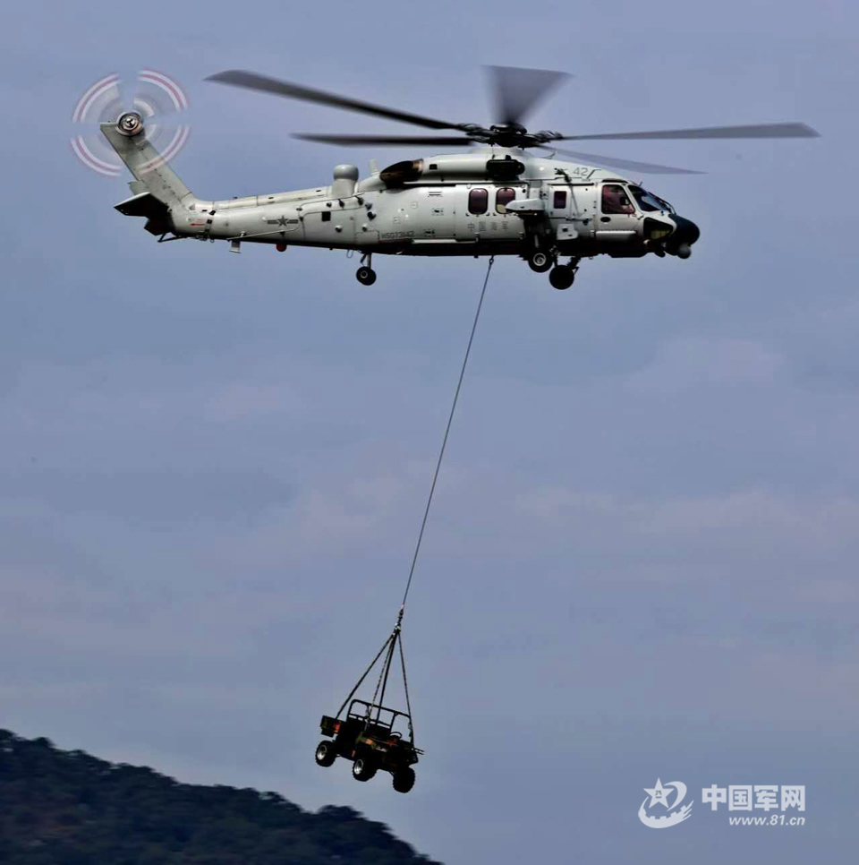 11月9日,海军直-20舰载直升机进行适应性飞行训练。周闽 摄