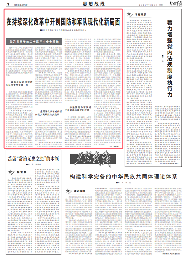 在持续深化改革中开创国防和军队现代化新局面