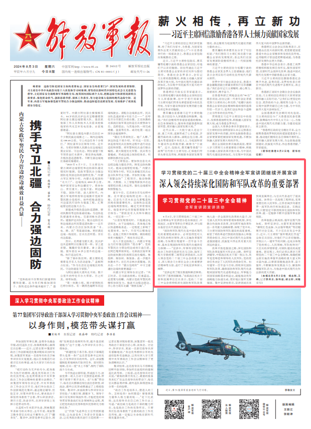(解放军报北京8月2日电 杨永刚、王祎,记者李兵正、张科进、胡立轩、刘敏采写)