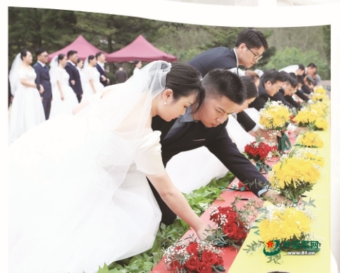 缅怀革命先烈、珍惜幸福生活、共创美好未来……9月中旬,江苏省南京市面向社会征集50对新婚夫妇,于9月30日到雨花台烈士陵园向革命先烈献花。驻宁某部现役军人梁亮和新婚妻子报名参加。他说:“我们今天的幸福生活来之不易,在烈士纪念日这个特殊的日子,以集体婚礼的形式向革命先烈表达敬意和哀思,很有意义。”