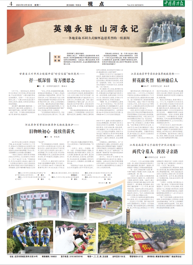 英魂永驻,山河永记。每一个烈士纪念日,都是一次家国记忆的唤醒,一次伟大精神的传承。在第十一个烈士纪念日到来之际,各地干部群众以多种方式致敬先烈、追思英雄,在缅怀中赓续红色基因,在传承中汲取奋进力量,向着中华民族伟大复兴的宏伟目标奋勇前行!