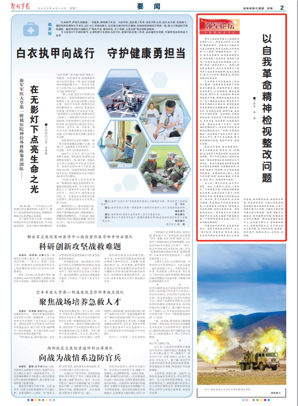 习主席在中央军委政治工作会议上强调:“各级特别是高级干部要把自己摆进来,拿出抛开面子、揭短亮丑的勇气,以深挖根源、触动灵魂的态度,深刻反思,认真整改,解决好思想根子问题,推动政治建军走深走实。”深入推进政治整训,要求党员干部在灵魂深处反躬自省,深刻检视是否存在理想信念模糊动摇、党的意识淡化、宗旨观念淡薄、精神不振、道德行为不端等问题。自我检视、对照检查的过程,就是党员干部实现自我净化、自我完善、自我革新、自我提高的过程。鲁迅先生有一句名言:“我的确时时解剖别人,然而更多的是更无情面地解剖我自己。”所谓“无情面地解剖”,就是要敢于向自己说不、敢于拿自己开刀、敢于从自己做起,努力做到揭短不怕痛、亮短不怕丑、治短不怕难。