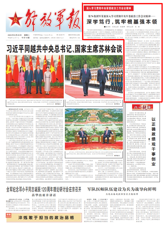 “我们要时刻保持冲锋姿态,心无旁骛谋战研战,努力锤炼能打仗、打胜仗的过硬本领。”三伏时节,雪域高原,正在野外驻训的第76集团军某旅“红色尖刀连”指导员结合所学所悟,与官兵分享学习中央军委政治工作会议精神的心得体会,引发大家共鸣。