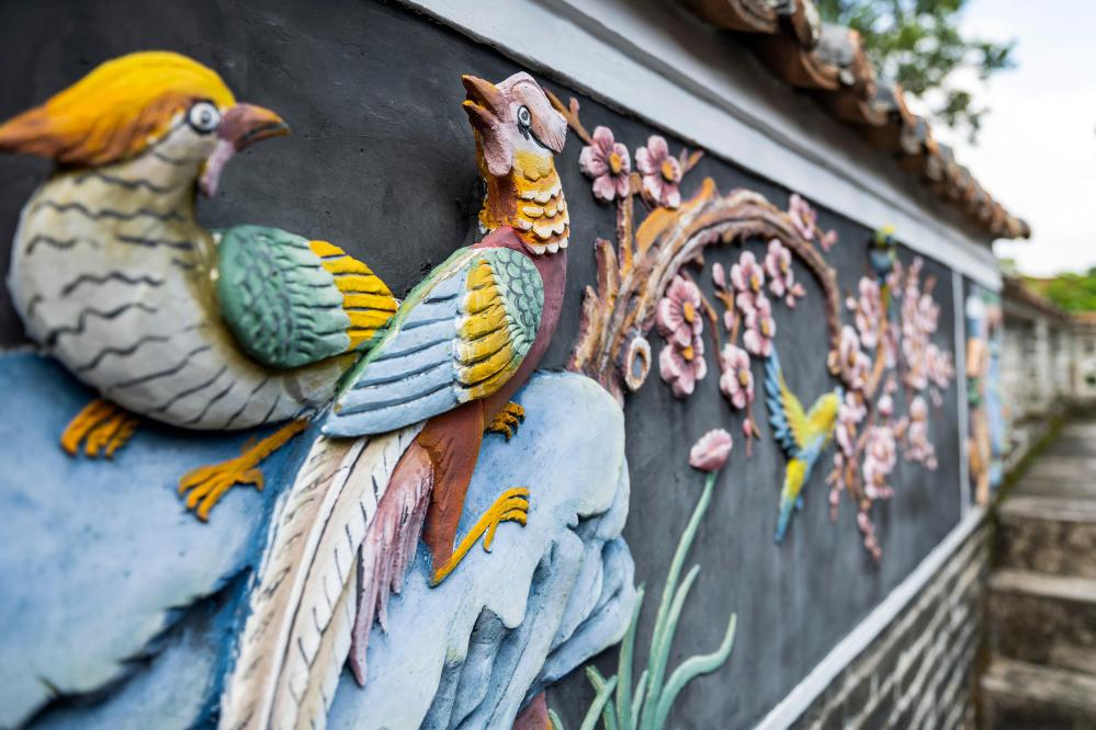 这是9月13日在塱头村积墨楼拍摄的灰塑装饰。
