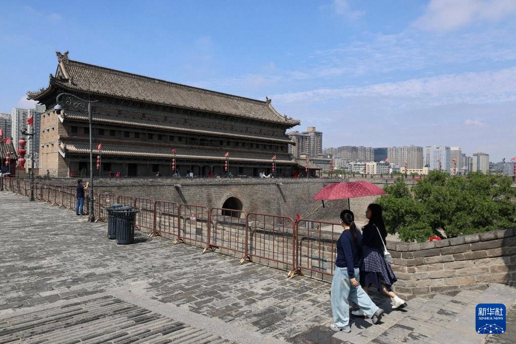 游客在西安城墙上游览(2025年9月12日摄)。新华社记者 朱唯希 摄