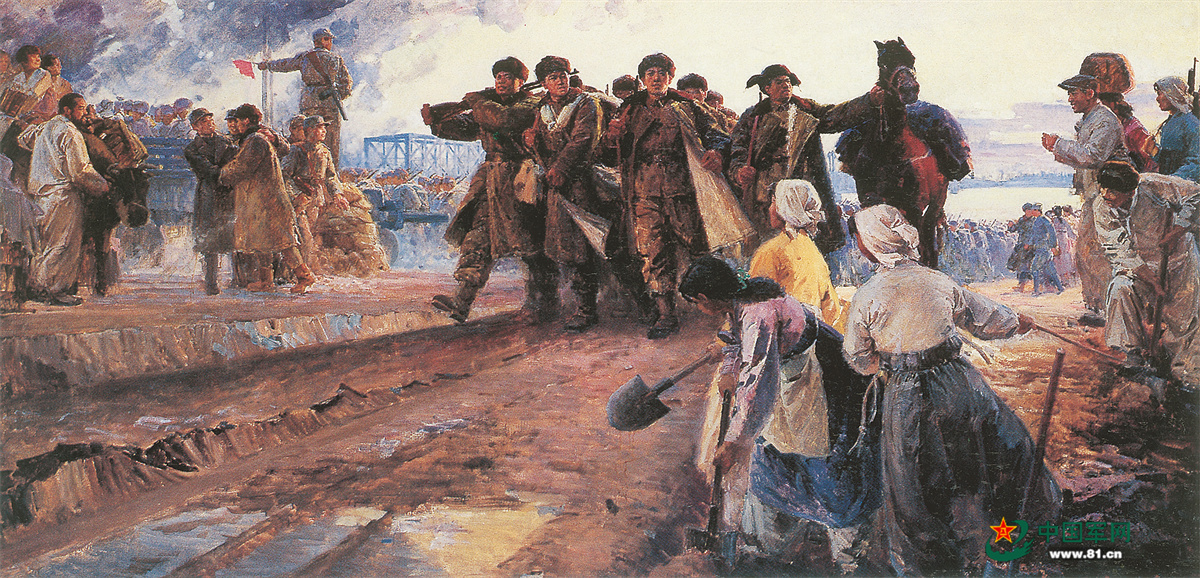 跨过鸭绿江(油画) 郑洪流作