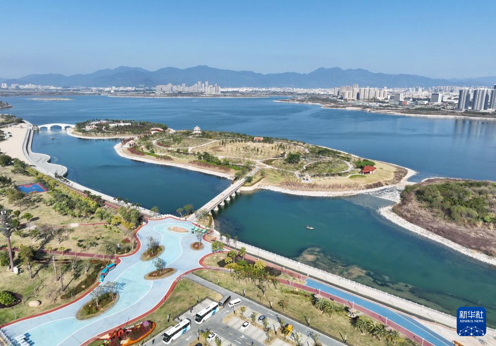 1月24日拍摄的厦门马銮湾生态三岛公园一角(无人机照片)。