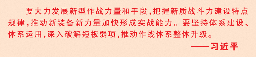 从战机雷霆出击到电磁天网密布,从数据全域贯通到体系深度融合,空军某部官兵以“倒排工期、到点交卷”的紧迫感,把握新质战斗力建设特点规律,坚持体系建设、体系运用,深入破解短板弱项,不断推动作战体系整体升级。