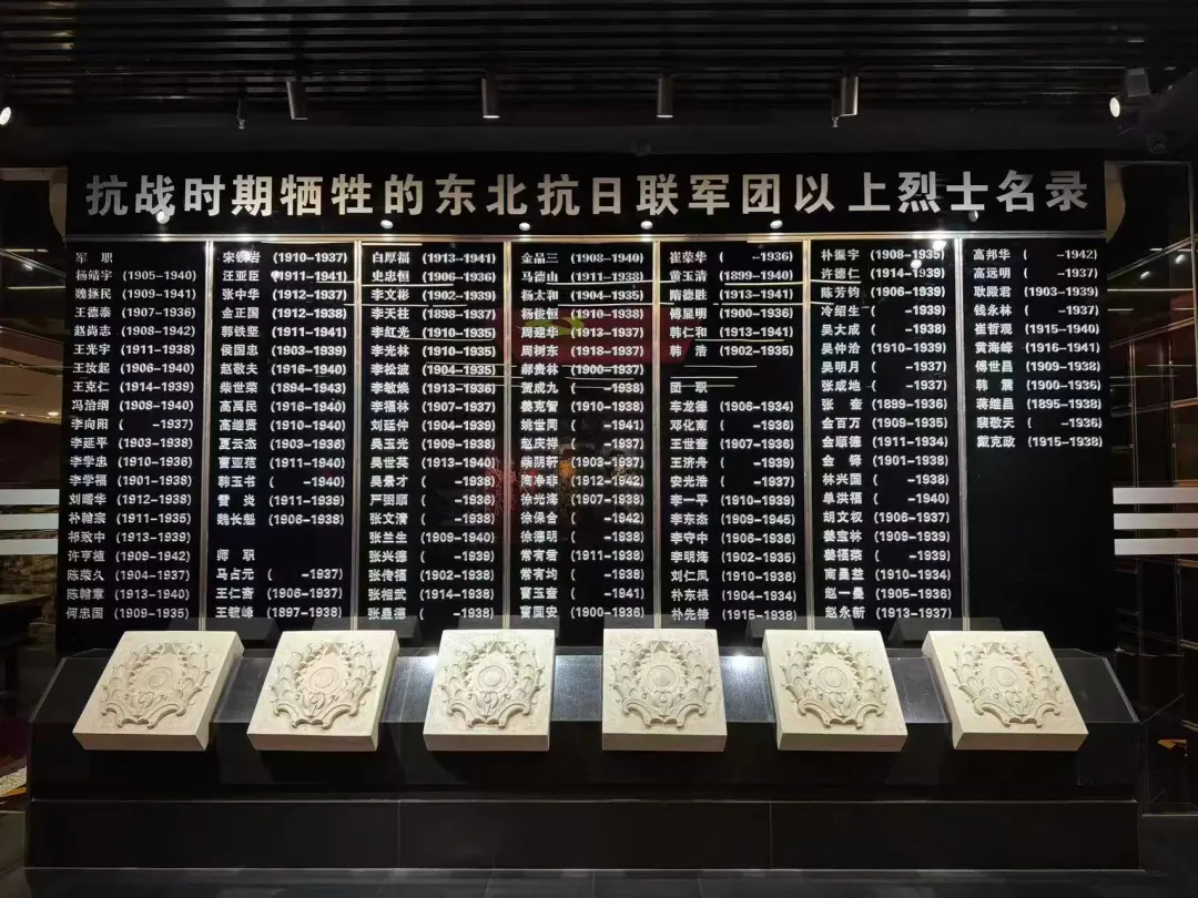 杨靖宇烈士陵园暨东北抗日联军纪念馆内的烈士名录。新华网 邵守志摄
