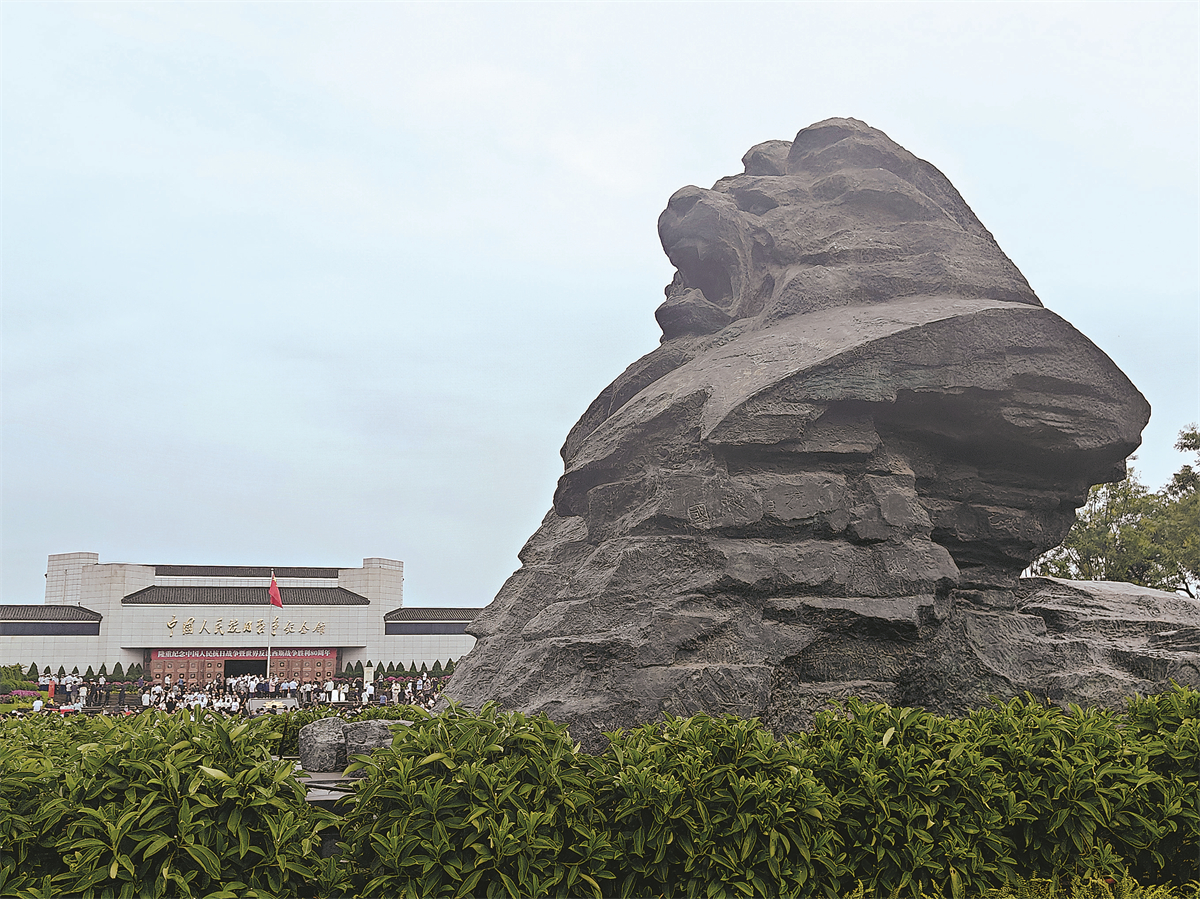 中国人民抗日战争纪念馆前的“醒狮”雕塑。