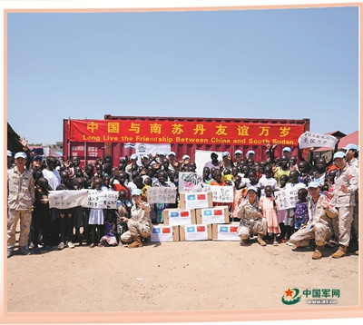 自部署至任务区以来,维和步兵营官兵积极发扬国际主义精神,多次赴当地学校、医院开展人道主义援助,捐赠文体生活用品、医疗物资,开展义诊。在当地民众看来,中国维和军人不仅是和平的盾牌,更是友谊与希望的使者。一次,看到30多名不同肤色的孩童用并不标准的发音齐声高喊“你好,中国”,一名联合国观察员不禁感叹:“这是最动人的跨文化对话,世界和平的薪火正在这里传递!”