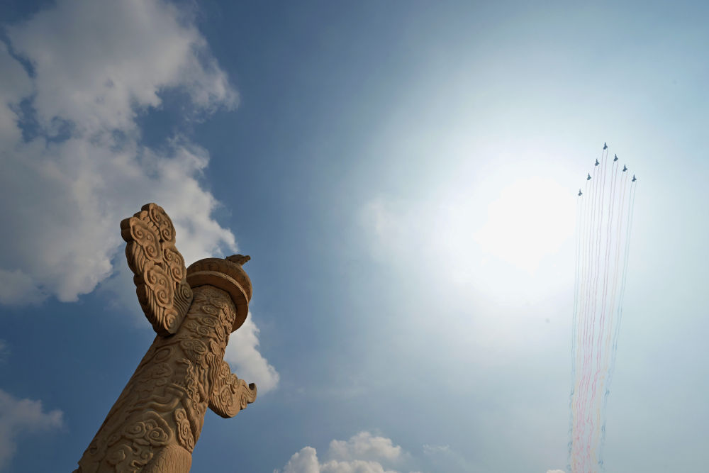 此时此刻,万众瞩目,屏息凝神。东长安街上,徒步方队、战旗方队、装备方队整齐列阵;华北多地,战机起飞,向天安门广场上空集结……
