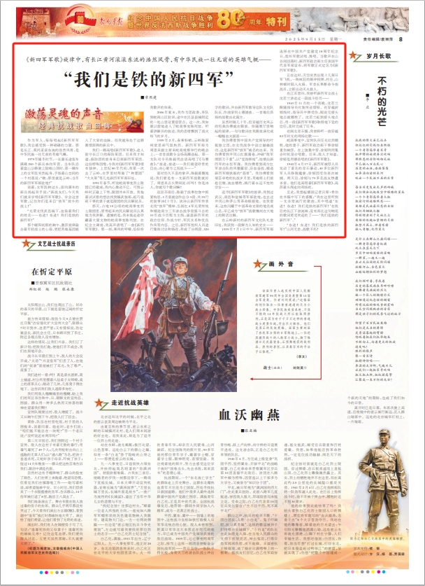 至此,我想起德国记者汉斯·希伯在书稿中写下的感慨:“我在这里听到一支非常流行的歌曲,其中唱道‘东进!东进!我们是铁的新四军!’在敌后的长江下游流域,没有再比这句响亮的歌词更受欢迎的了——‘我们是铁的新四军’。”