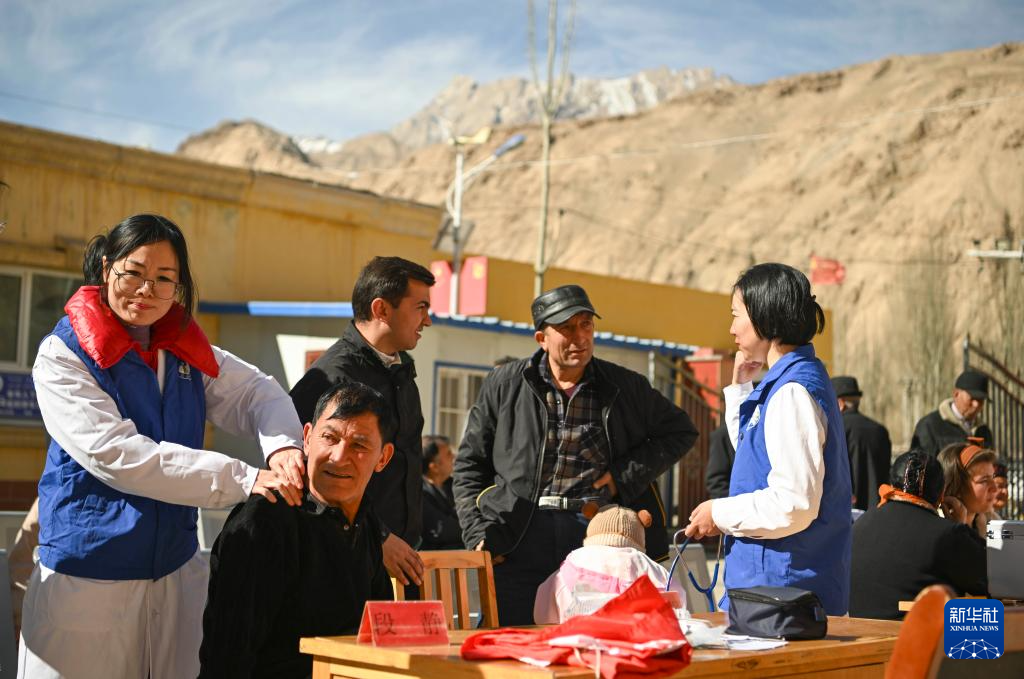 在新疆塔什库尔干塔吉克自治县库科西鲁格乡卫生院,深圳援疆中医康复科医生段静(左一)为村民诊疗(2025年3月24日摄)。