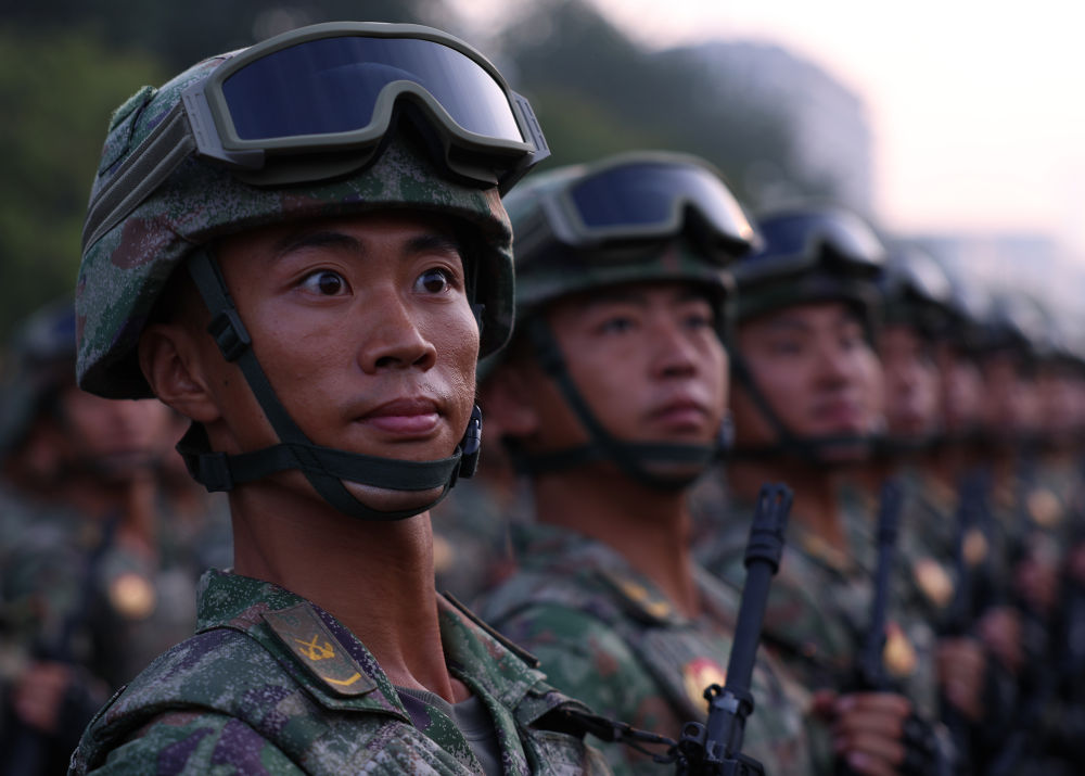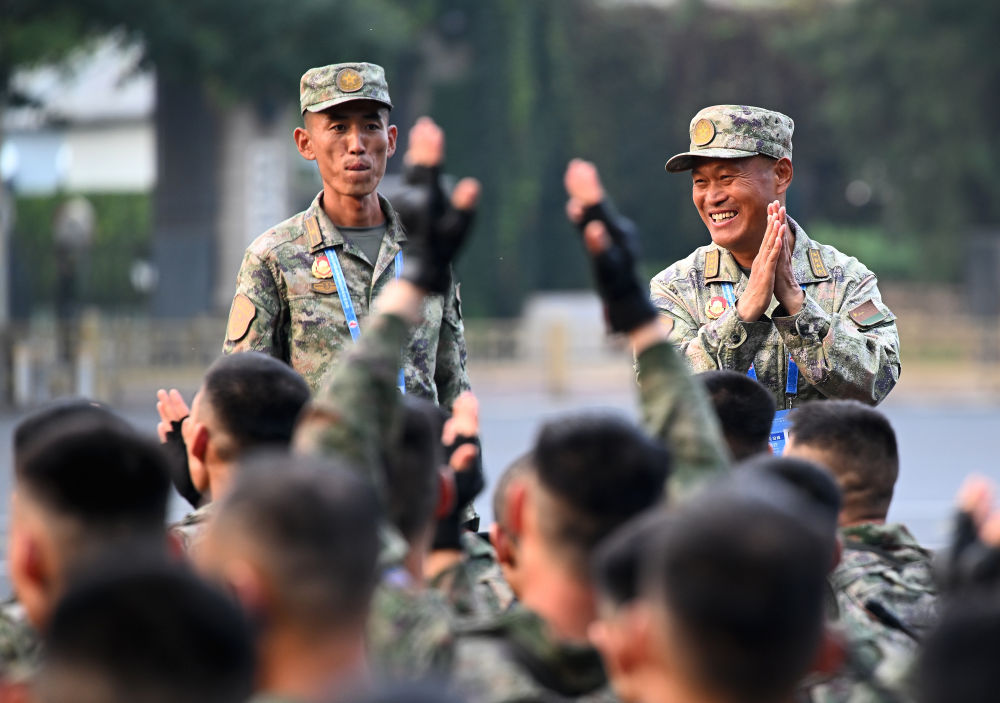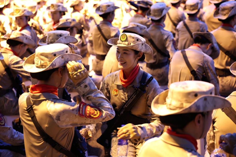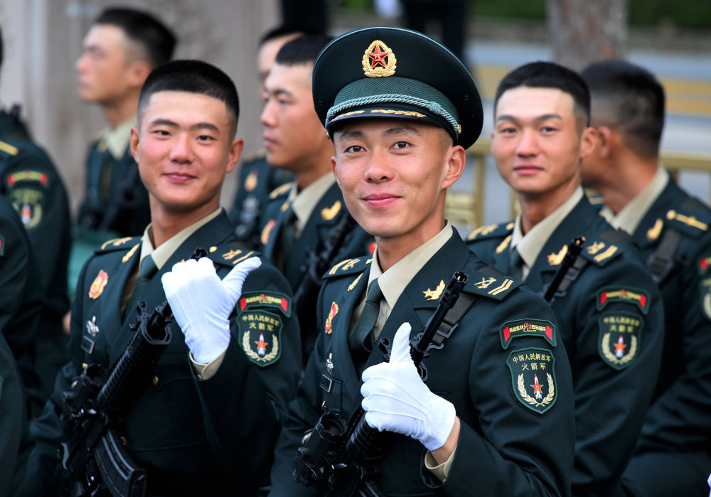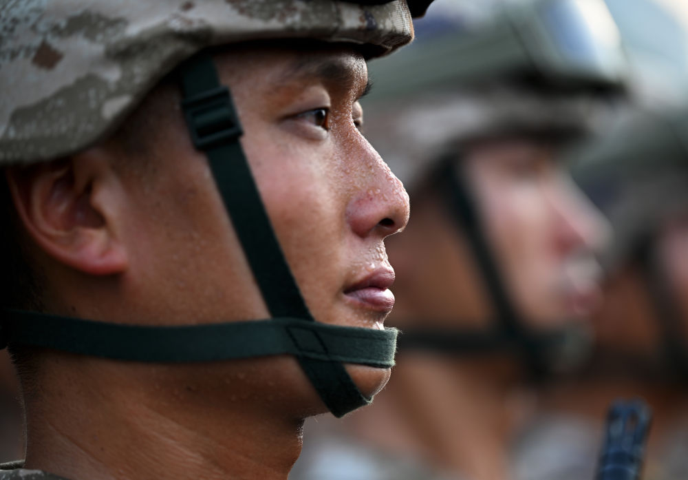 战士们身如青松挺拔
