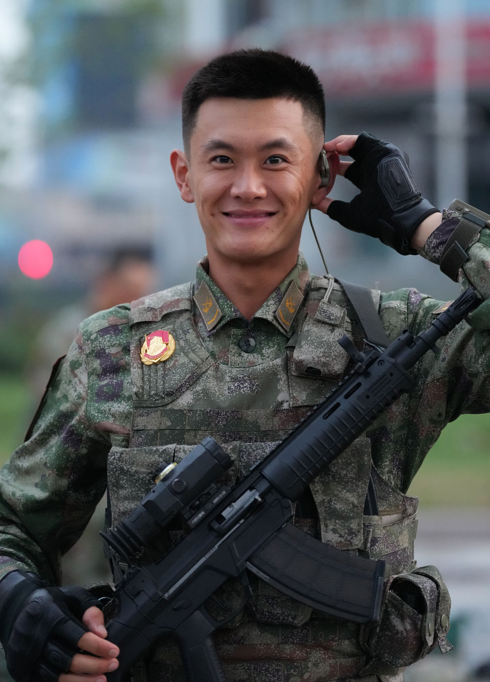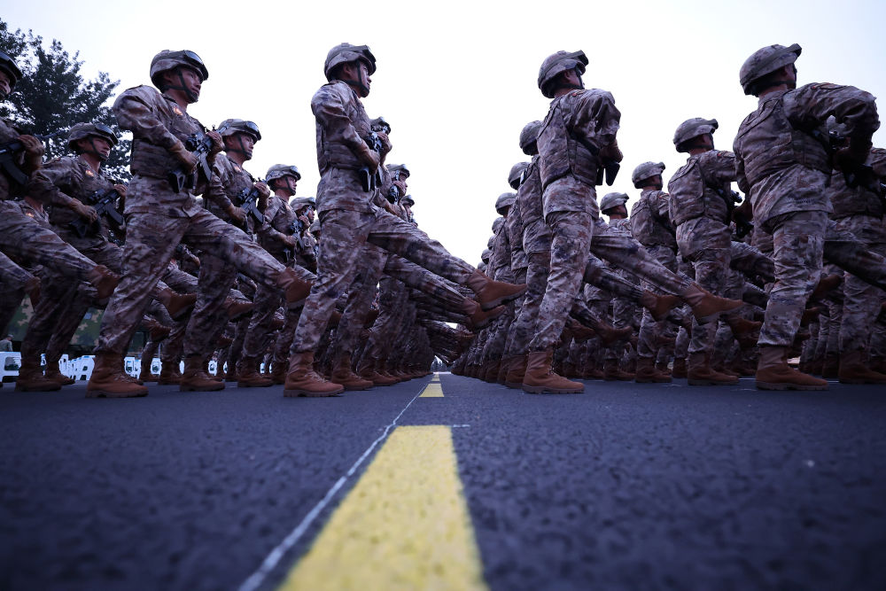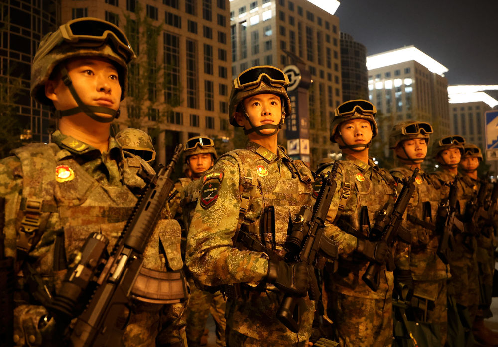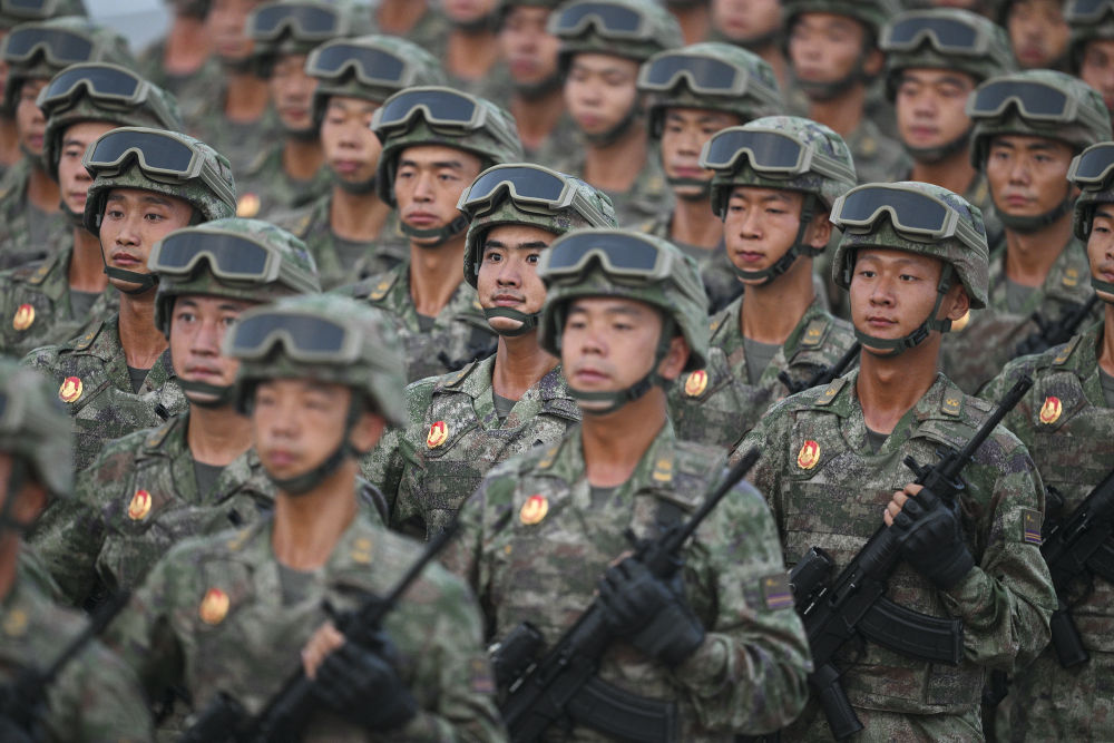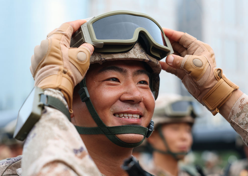 战士们身如青松挺拔