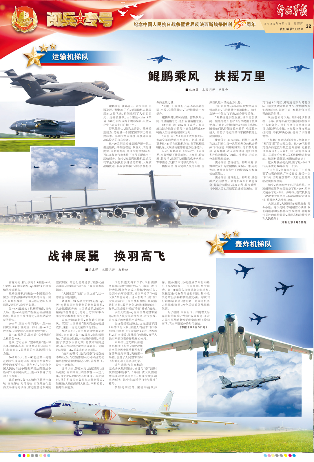 参加受阅任务,荣誉与挑战并存。任务期间,各机组成员用行动给出了坚定回答——传承血脉、勇立新功。轰-6J编队各机组提高训练标准,依托复杂气象条件进行训练,集中攻关总结出多种特情处置办法。每次飞行训练结束后,他们第一时间为机务人员提供数据,为今后练兵备战提供依据。