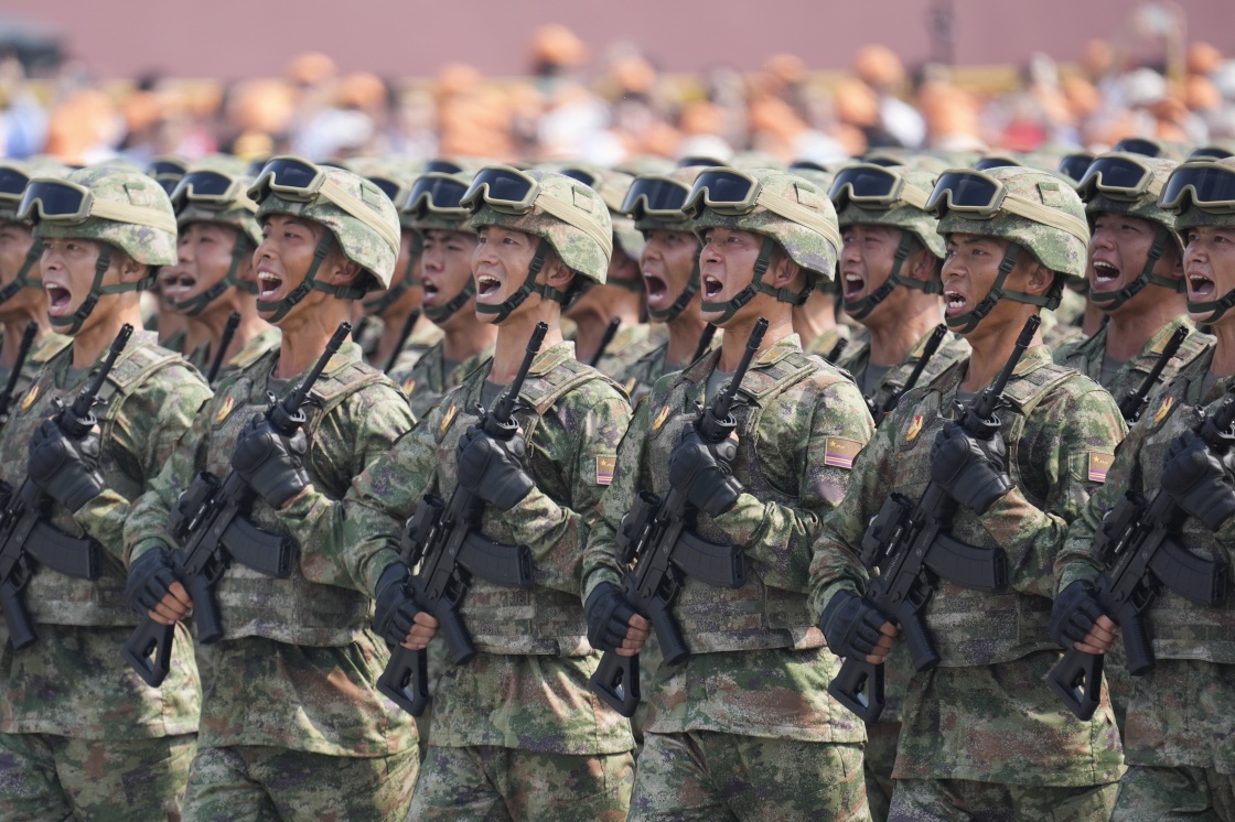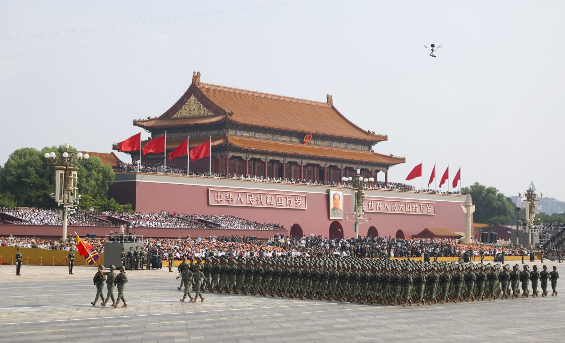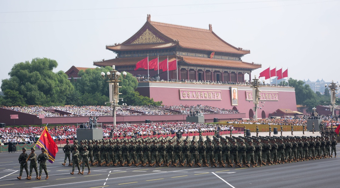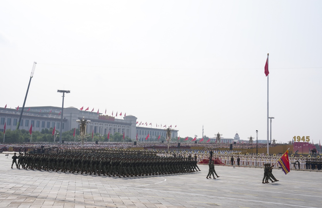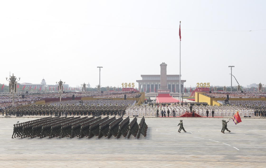9月3日,纪念中国人民抗日战争暨世界反法西斯战争胜利80周年大会在北京隆重举行。这是信息支援部队方队通过天安门广场。