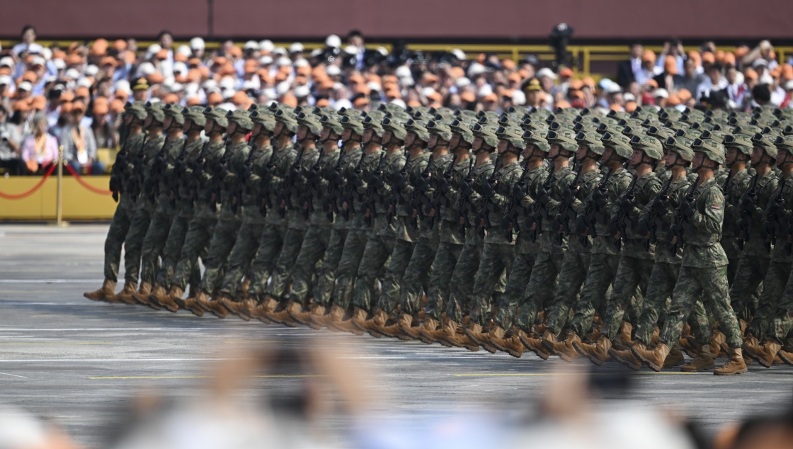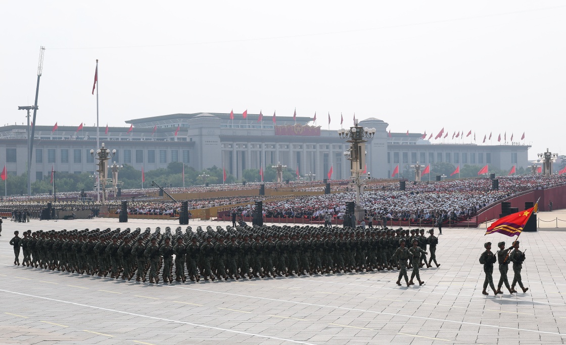 9月3日,纪念中国人民抗日战争暨世界反法西斯战争胜利80周年大会在北京隆重举行。这是信息支援部队方队接受检阅。