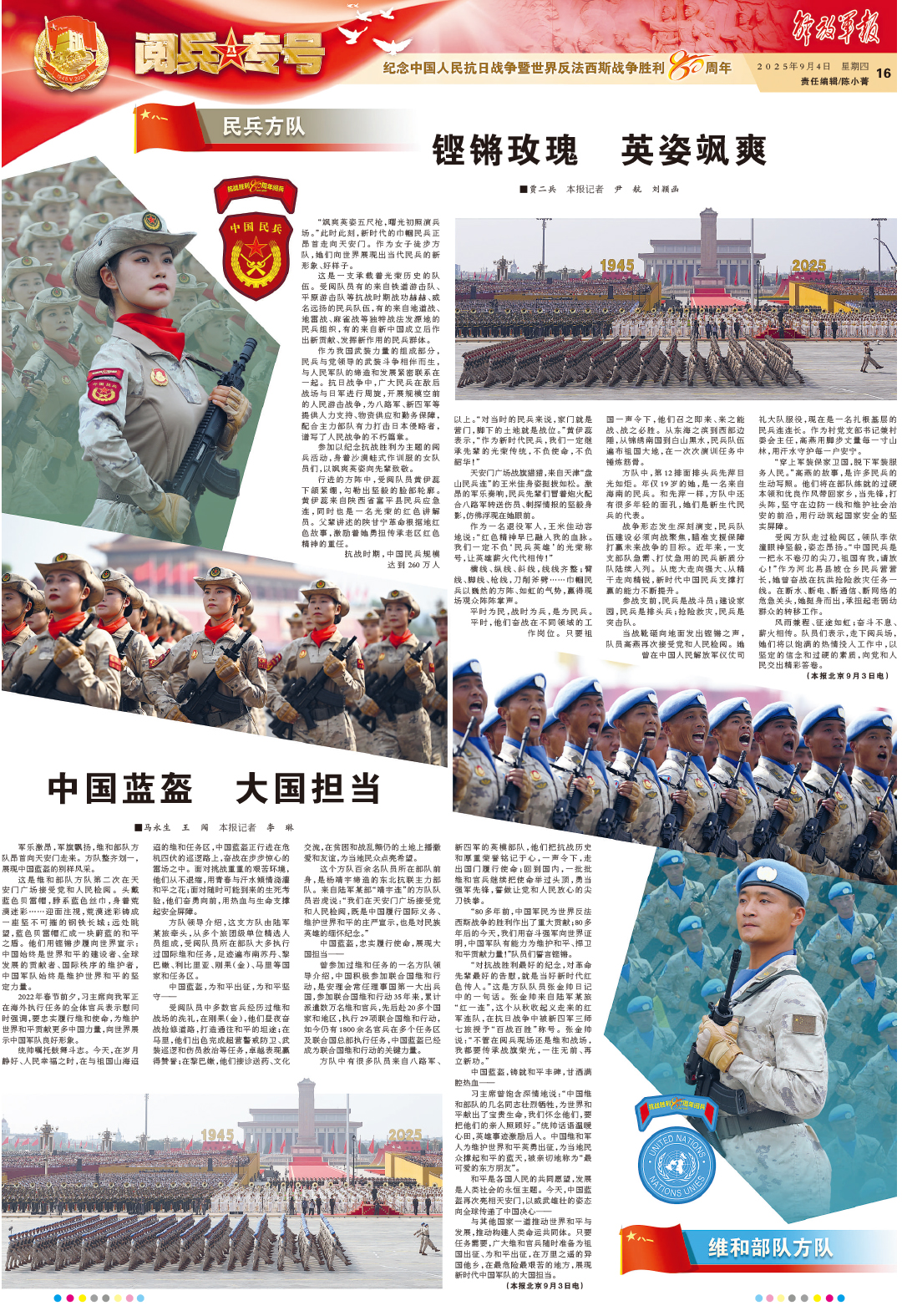 参加以纪念抗战胜利为主题的阅兵活动,身着沙漠蛙式作训服的女队员们,以飒爽英姿向先辈致敬。