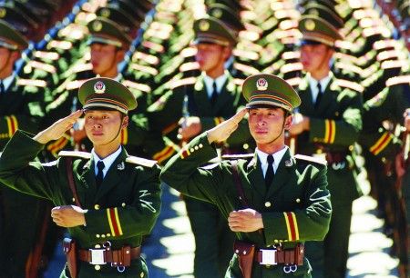 2009年国庆阅兵,崔晓伟(右)和周勇(左)接受检阅(资料图)