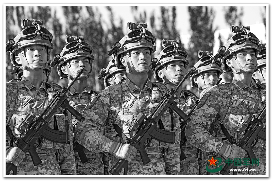 训练中,我们每天要在“阅兵道”上走过上百个来回。作战靴磨破了、衣服被汗水浸透、皮肤黝黑发亮……但我们的身姿越来越挺拔,目光越来越坚定。