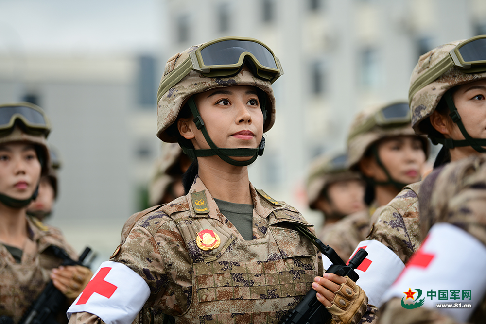 她被女兵的飒爽英姿震撼到