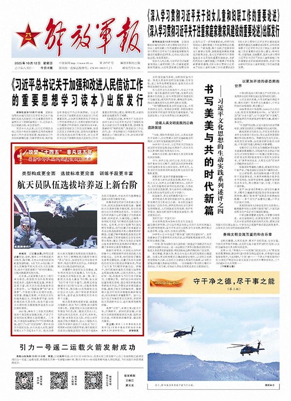 解放军报讯 记者高立英、特约记者占康报道:金秋,神舟二十号乘组航天员陈冬、陈中瑞、王杰从中国空间站向祖国发回祝福。3次飞天、6次出舱,中国人民解放军航天员大队大队长陈冬,成为中国目前累计飞行时间最长、出舱次数最多的航天员。
