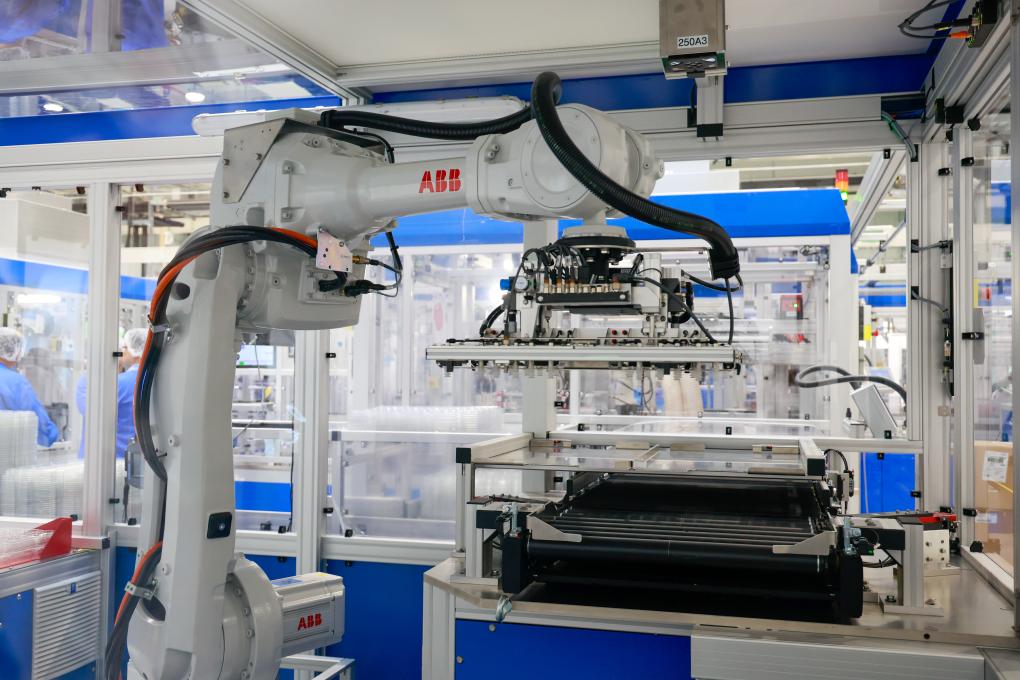 9月18日,在江苏常州中瑞(常州)国际产业创新园,机械臂在医沛生医疗器械制造(常州)有限公司生产车间作业。新华社记者 刘佳琪 摄