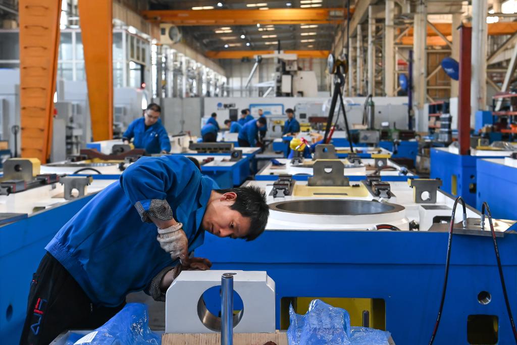 2月26日,工作人员在位于宝鸡市渭滨区的陕西秦川机床工具集团股份公司生产车间加工零部件。新华社记者 邹竞一 摄