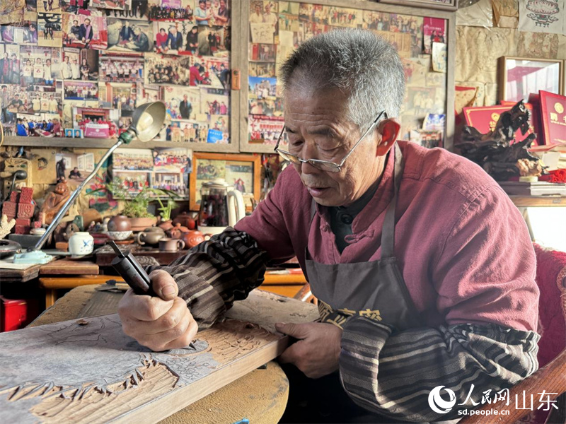正在精心刻版的齐传新。人民网 郑昕桥摄
