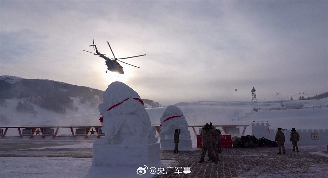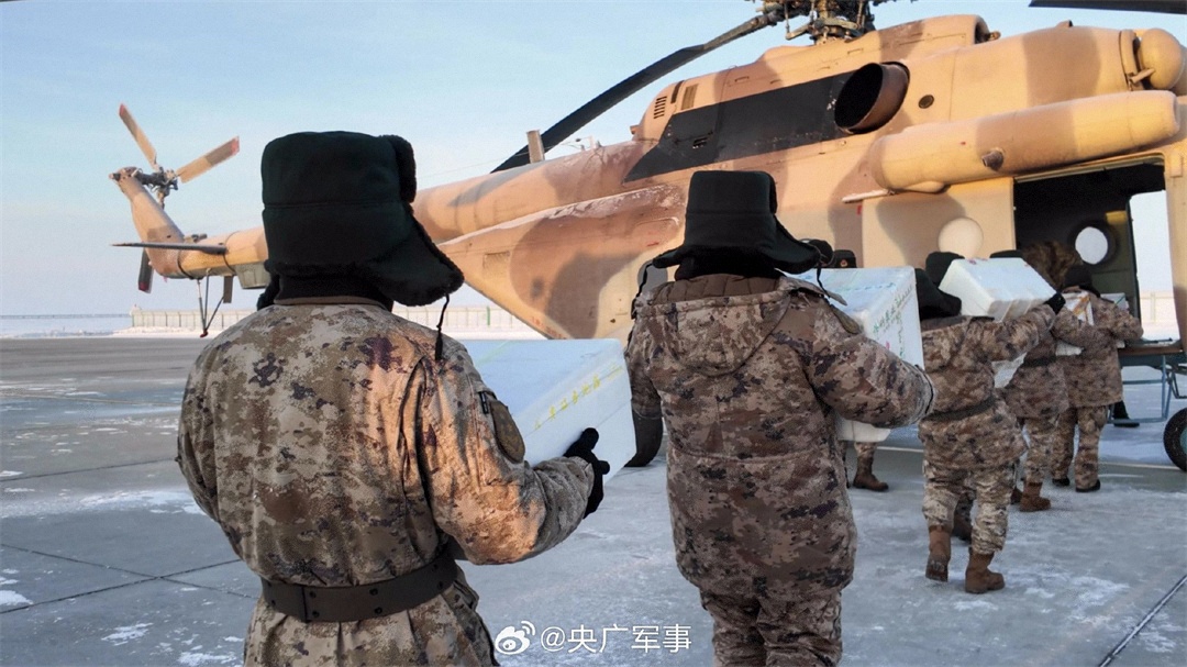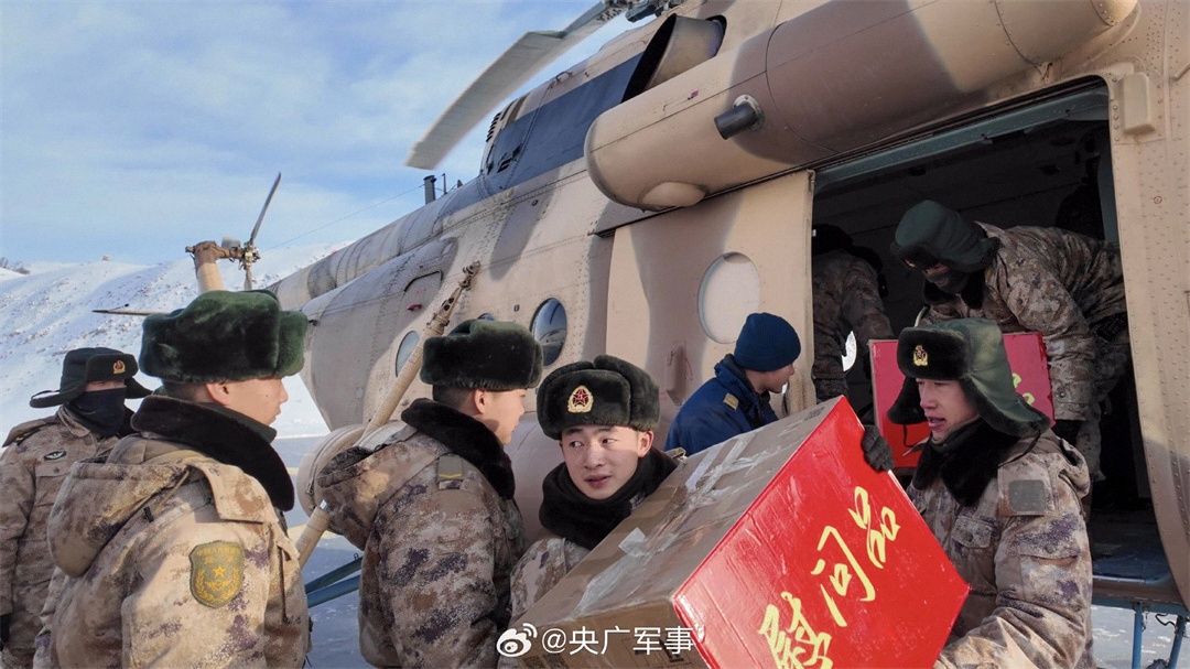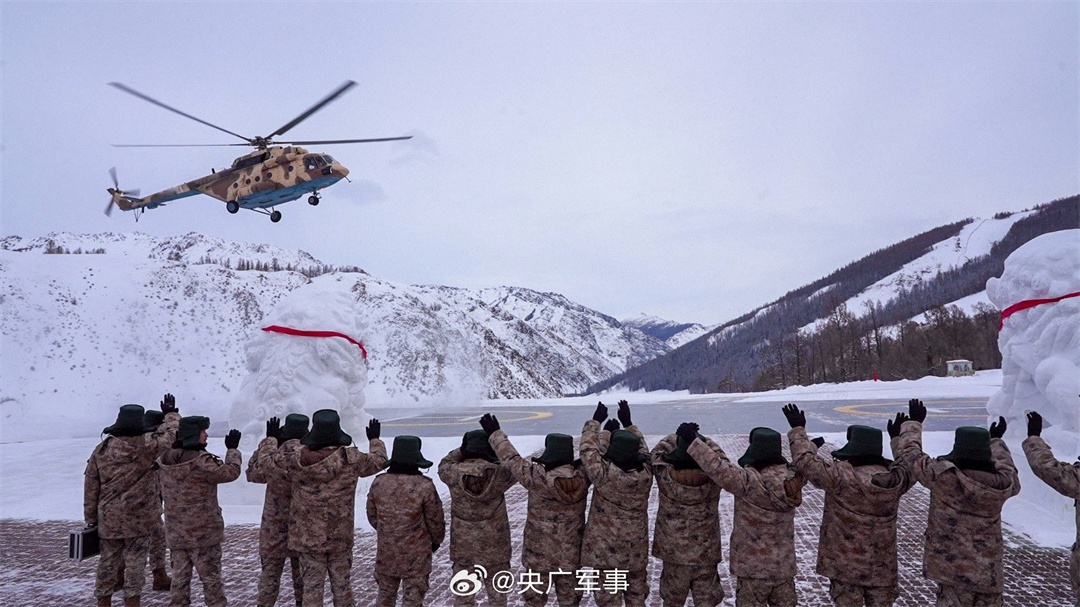 临近春节,新疆军区某陆航旅派出直升机,为位于阿尔泰山深处的红山嘴边防连运送过冬物资。此次运送的物资包括蔬菜、水果、文体器材、生活用品、执勤训练装备等,既满足了官兵们的训练和生活需要,又为“雪海孤岛”送来了暖意和年味。
