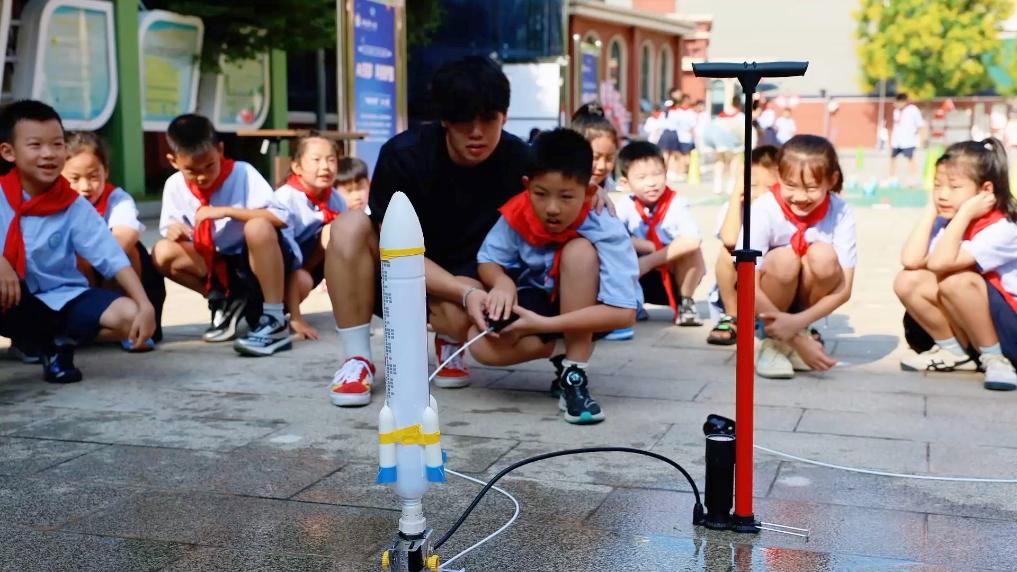 在湖南省常德市,武陵区第一小学组织了一场主题为“AI筑梦,科技护国”的科创节活动,学校精心设置了“火箭发射”“机械手臂”“空气大炮”等11个科技体验项目,将趣味性与知识性融为一体。