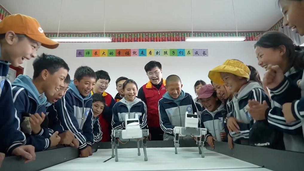 国家电网杭州供电公司“点亮玉树”公益团队联合青海省玉树市第二民族中学开展“AI教育”计划,志愿者为孩子们带去了丰富有趣的人工智能课程,指导他们完成智能机器狗的组装和编程。