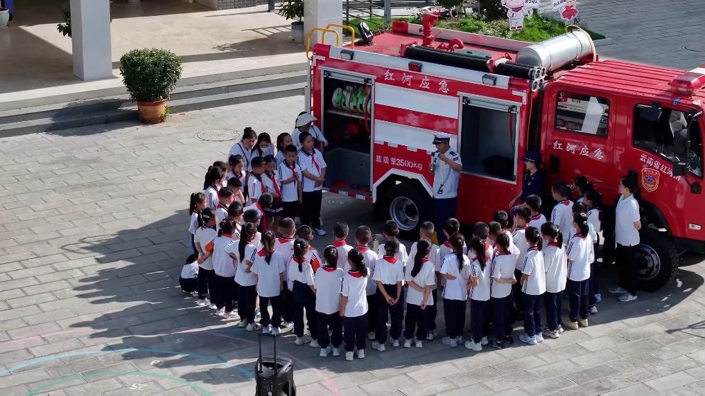 在云南省红河哈尼族彝族自治州,交警、消防及供电部门联合为开远市东城小学的同学们带来了一场沉浸式安全知识盛宴。