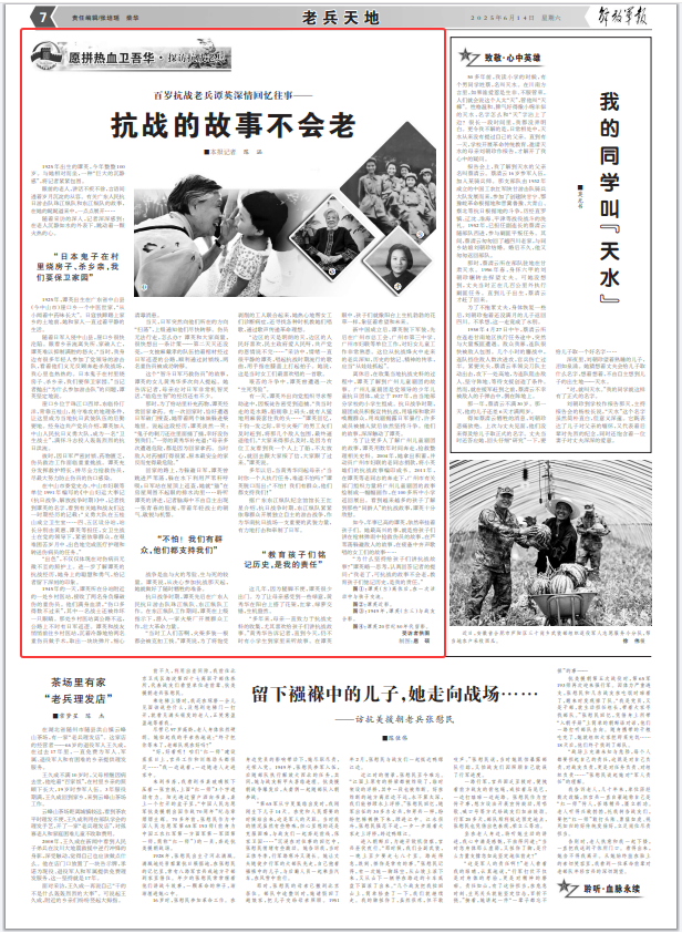 “为什么坚持给孩子们讲抗战故事?”谭英略一思考,认真回答记者的提问:“我老了,可抗战的故事不会老,教育孩子们铭记历史,是我的责任。”