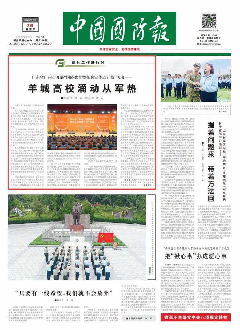 一场场走心的宣讲、一次次震撼的实操体验,点燃学子的报国热忱。广州市征兵工作领导小组负责人表示,将以此次活动为契机,结合毕业生招聘、学生军训、全民国防教育月等时间节点,扎实开展国防教育,让崇军尚武的种子根植菁菁校园,为强军伟业输送源源不断的优质兵员。