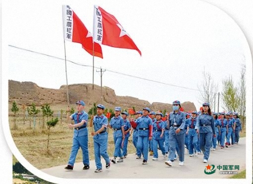 “六盘山呀山高峰,赤旗漫卷西风。今日得着长缨,同志们,何时缚住苍龙?”六盘山上,毛泽东回顾艰难历程,展望革命未来,一首《长征谣》直抒胸臆,这便是《清平乐·六盘山》一词的雏形。前不久,彭阳县人武部组织专武干部和民兵沿古长城重走长征路,感悟气壮山河的革命乐观主义精神。