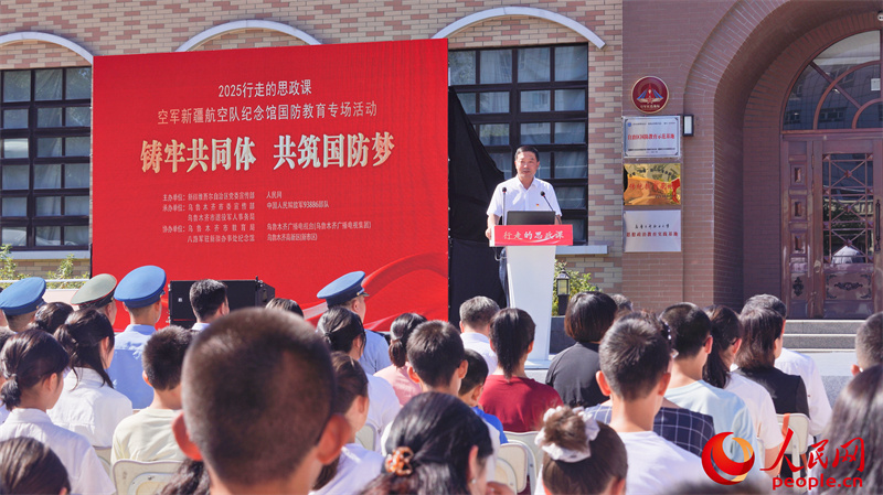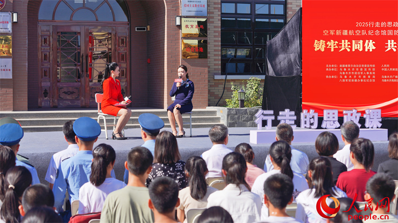 人民网乌鲁木齐8月28日电 (记者陈新辉)烽火岁月锻造民族脊梁,强军征程激荡时代回响。8月27日,“牢记嘱托 感恩奋进——2025行走的思政课”走进空军新疆航空队纪念馆,这场国防教育专场活动的主题为“铸牢共同体 共筑国防梦”。