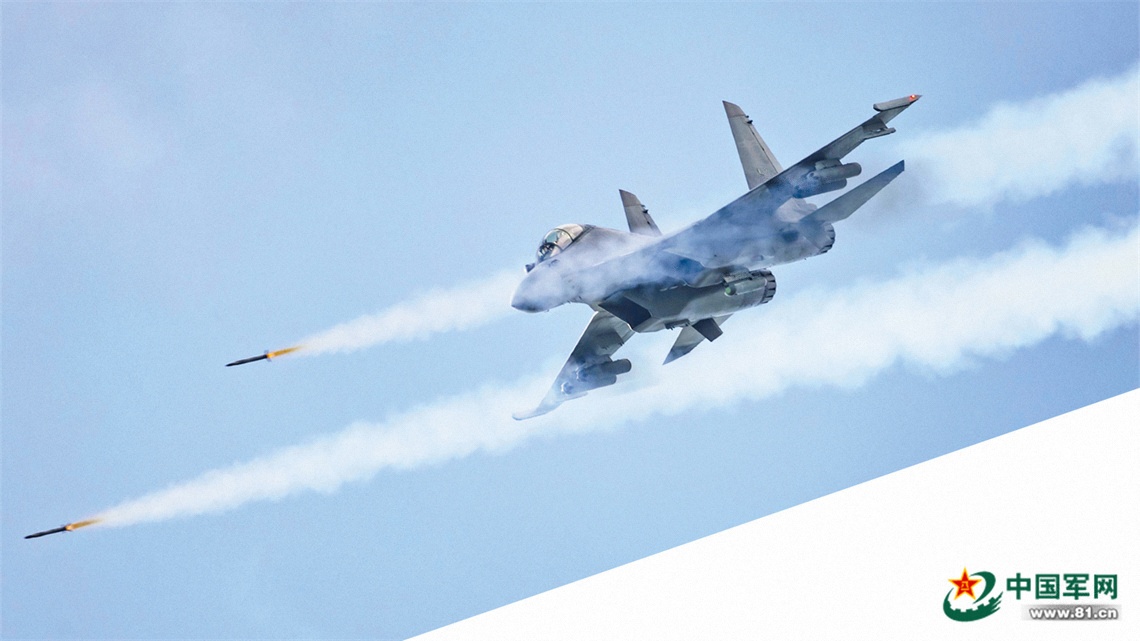 空军某部开展实弹射击训练。