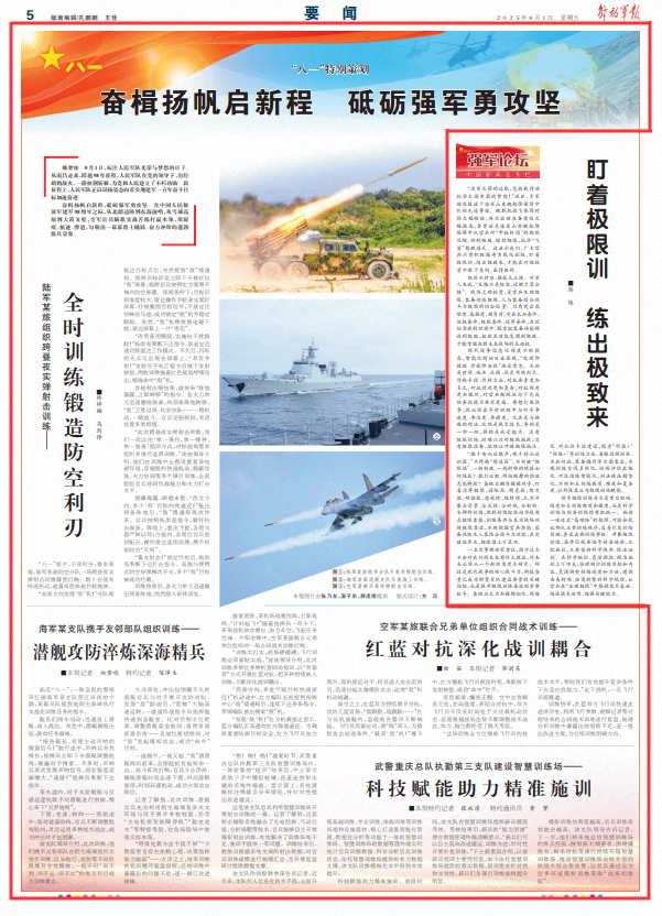 奋楫扬帆启新程,砥砺强军勇攻坚。在中国人民解放军建军98周年之际,从北疆边陲到东海前哨,从雪域高原到大漠戈壁,全军官兵瞄准实战苦练打赢本领,用履痕、航迹、弹道,勾勒出一幕幕将士踊跃、奋力冲锋的蓬勃练兵景象。